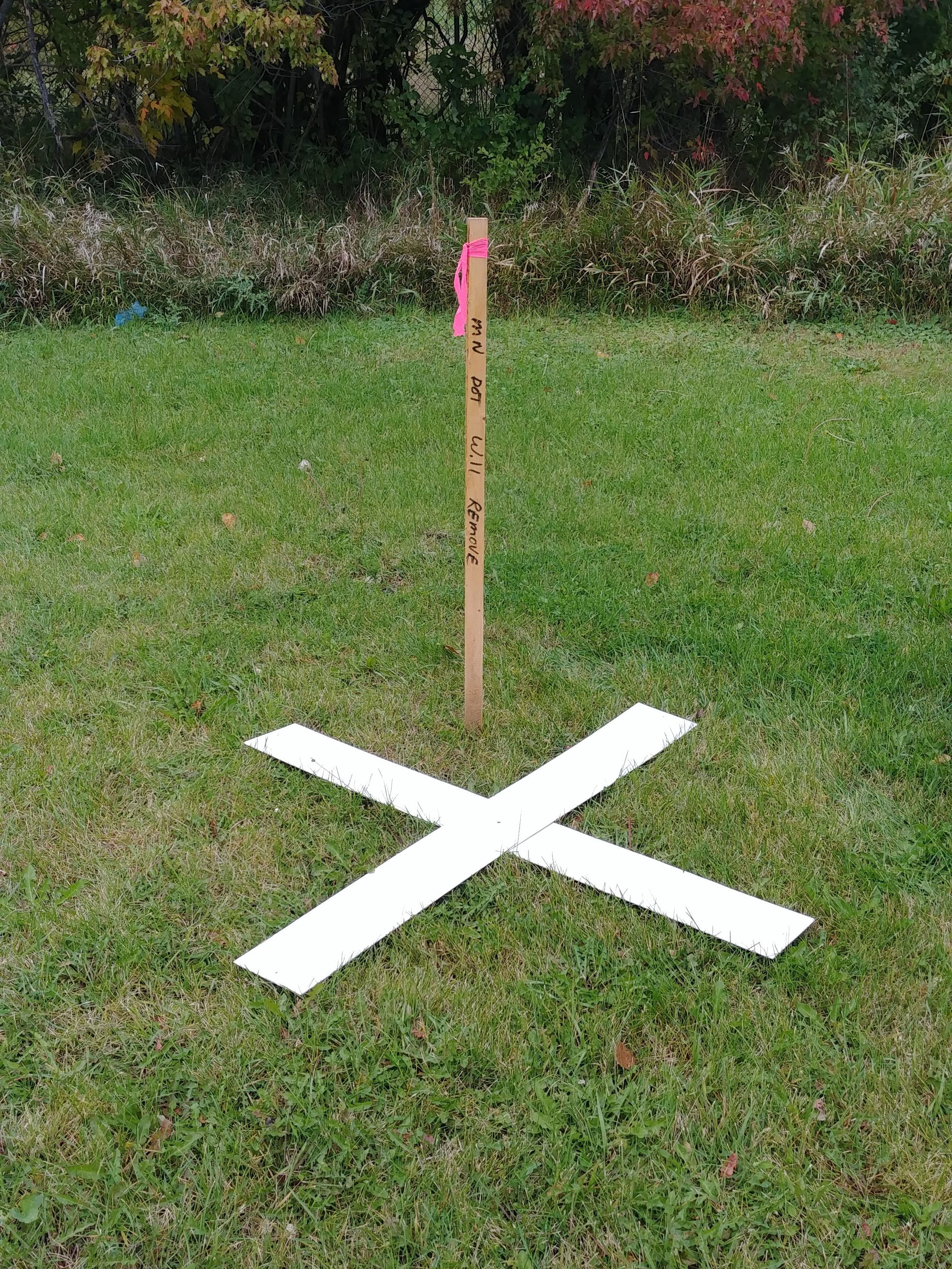 The aerial survey process relies on clear observations and must be conducted after the spring melt and before the trees leaf out. To begin the process crews place an “X” on the ground as a reference point for the aerial photographer.